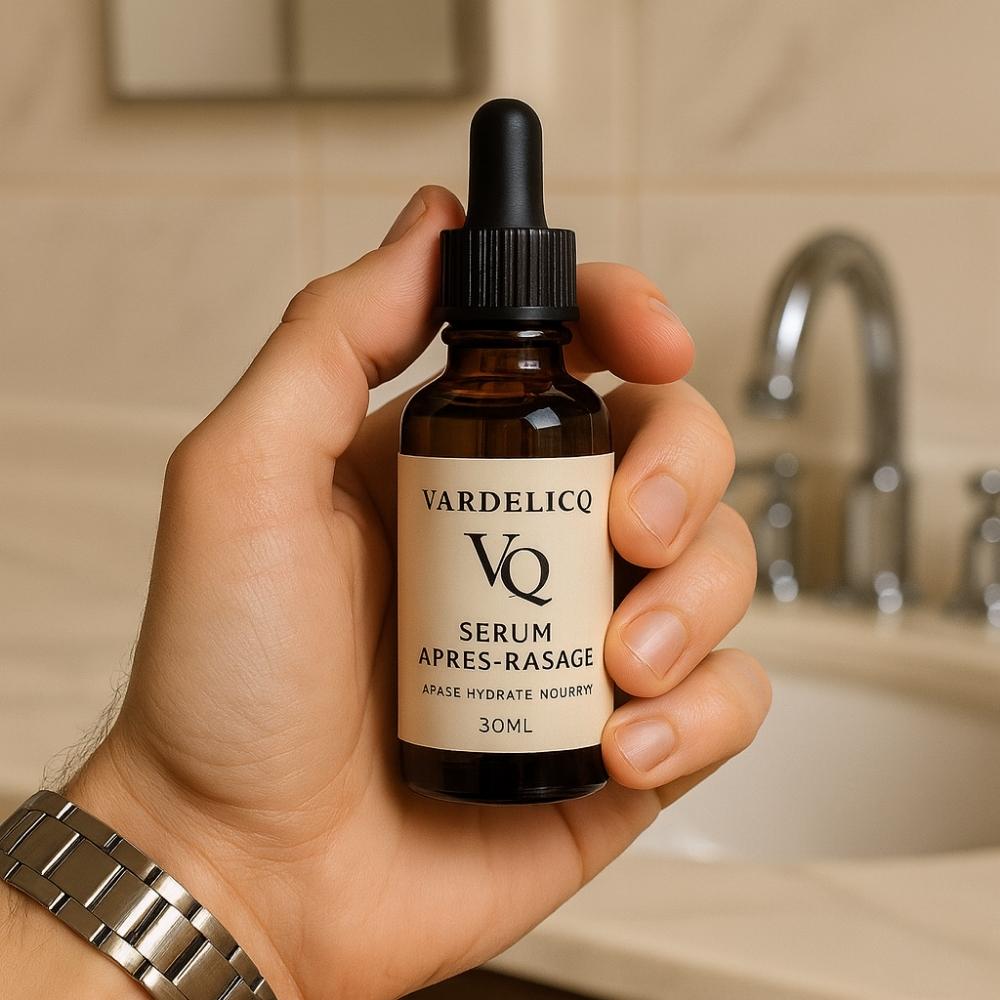 Chaque goutte du sérum après-rasage Vardelicq concentre le meilleur du soin post-rasage : des huiles végétales nourrissantes, des actifs apaisants et une texture légère, non grasse.